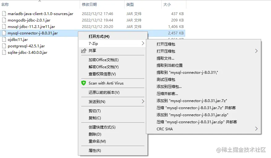 使用解压缩软件就可以解压查看jar包中的文件类型信息了,这里以7-Zip软件示例。