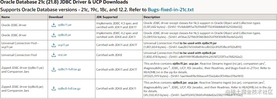 根据Oracle服务器的版本选择对应的驱动版本下载即可