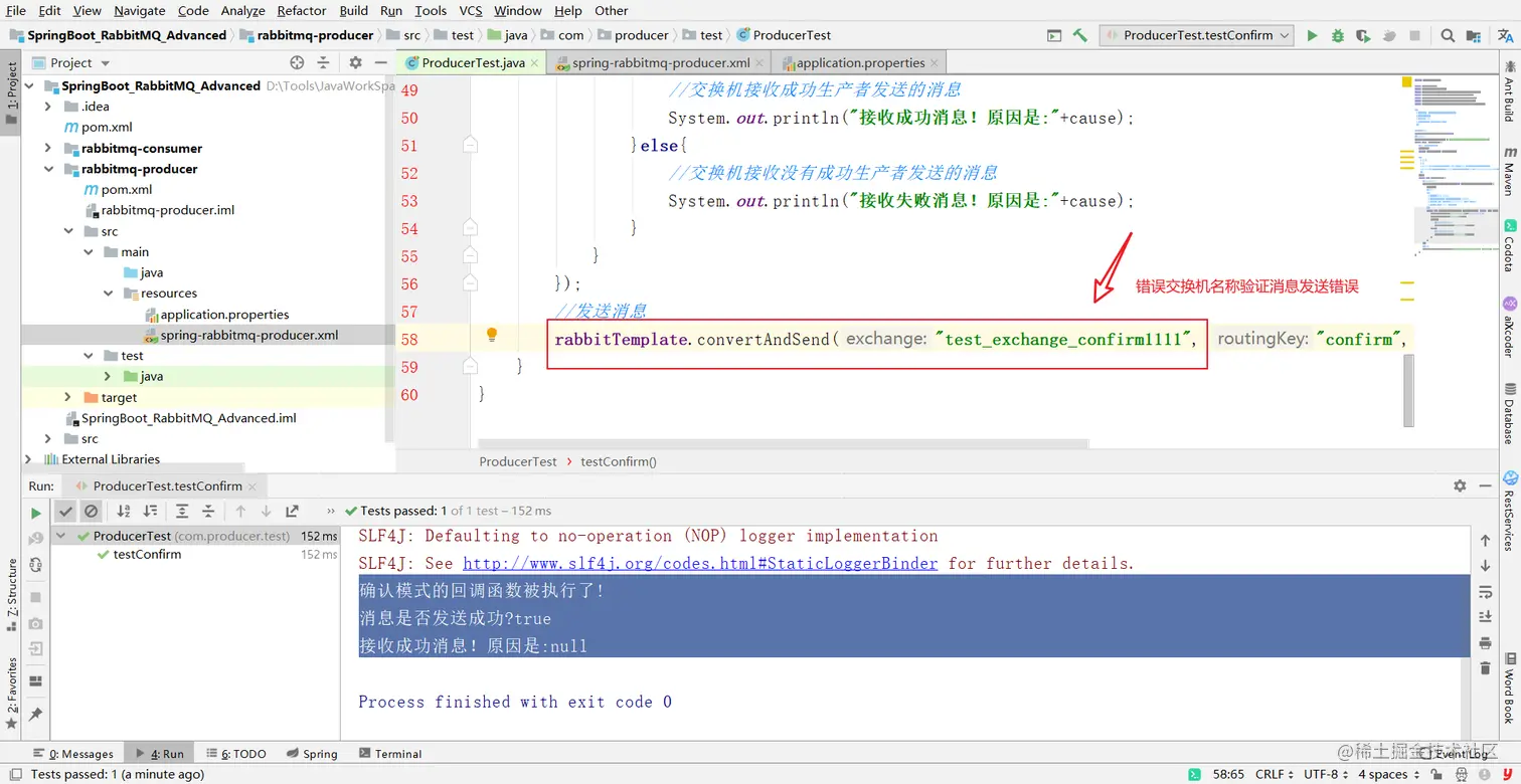 rabbitTemplate.convertAndSend( "test_exchange_confirm" , "confirm111" , "message confirm..." );