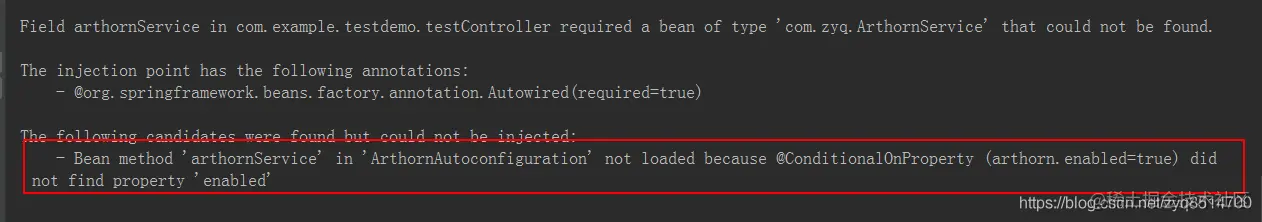 原来是我们之前配置的条件注解,调用该组件需要在配置属性中添加arthorn.enabled=true,修改后启动成功,调用接口