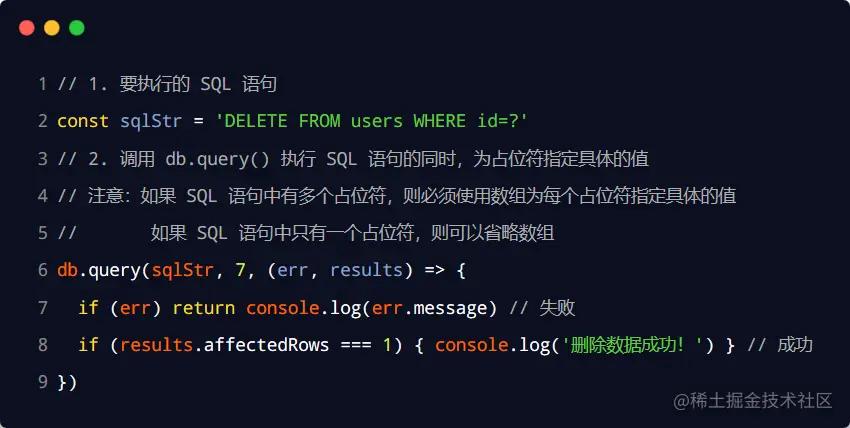 在删除数据时,推荐根据 id 这样的唯一标识,来删除对应的数据。示例如下:
