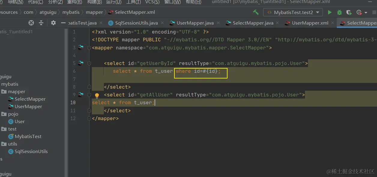 select * from t_user where id=#{id};