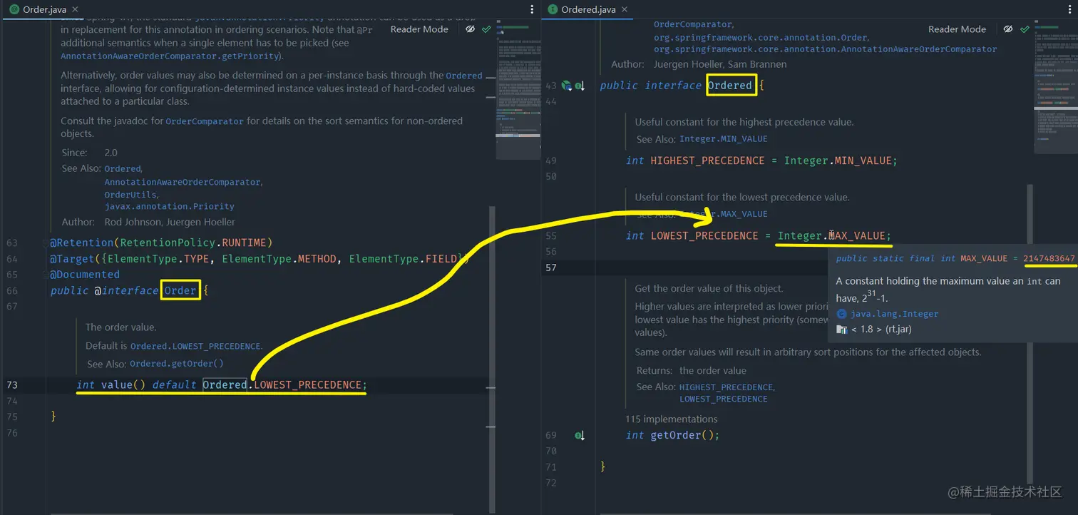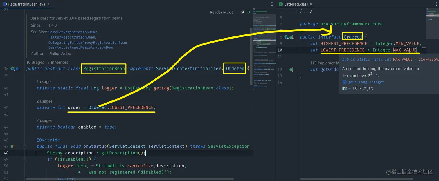 Filter时,其FilterRegistrationBean对象内部有一个属性order,其作用是配置当前Filter的过滤顺序,值越小,顺序排在越前,且默认值为2147483647(int的最大值)-