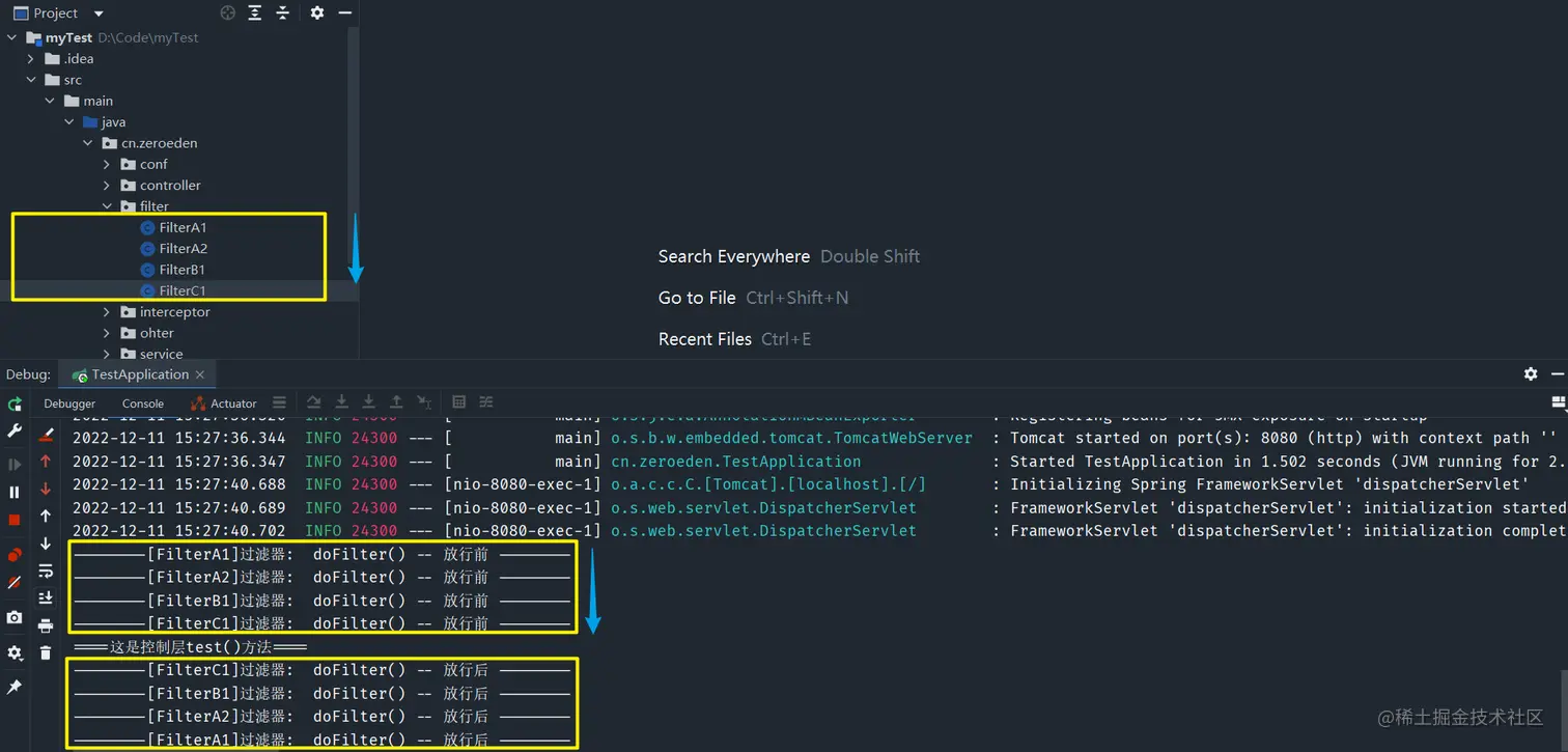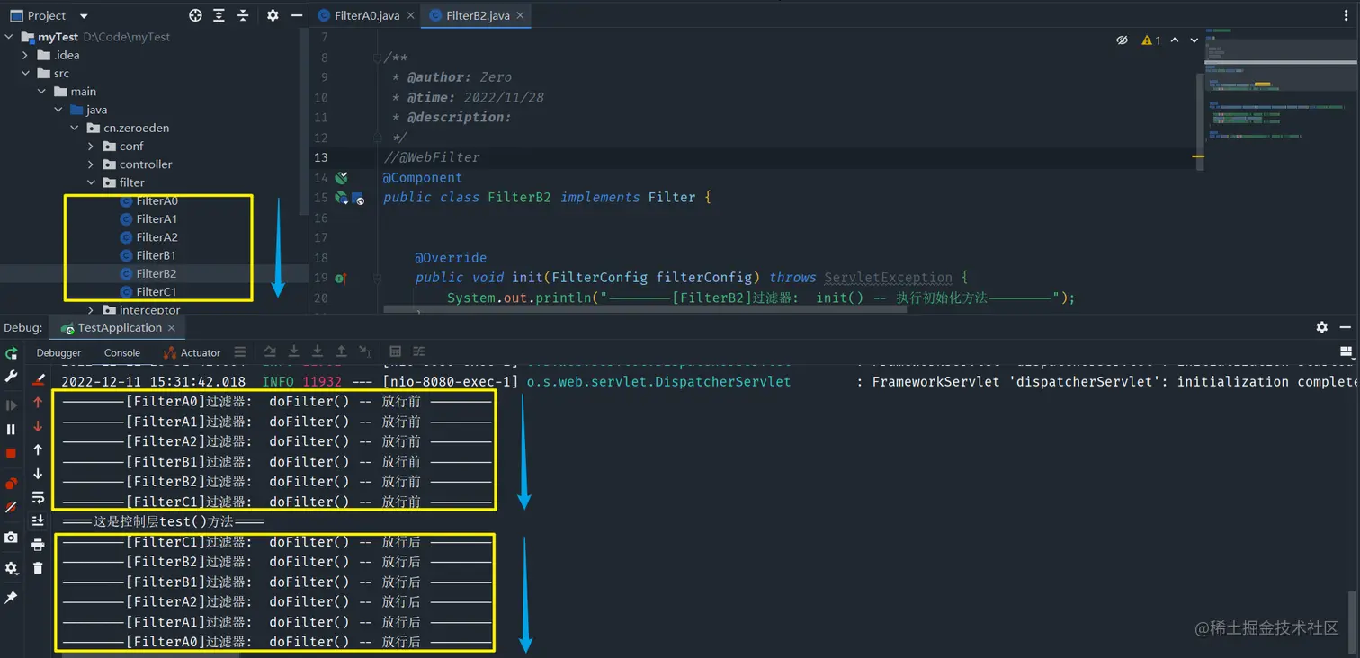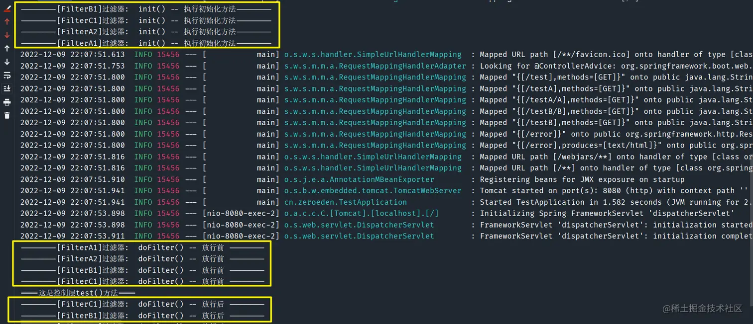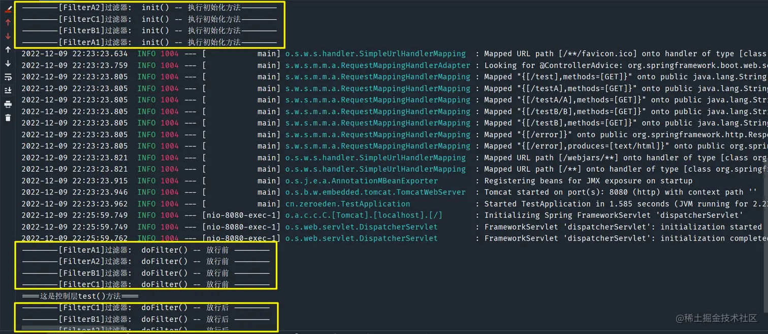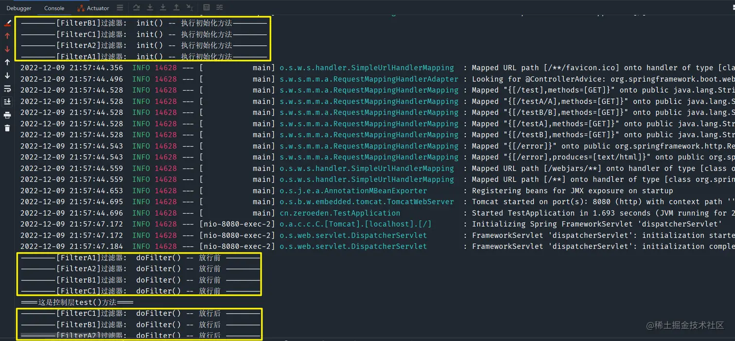 /test接口,其过滤顺序也正好是FilterA0,FilterA1,FilterA2,FilterB1,FilterB2,FilterC1 -