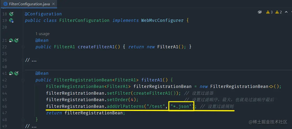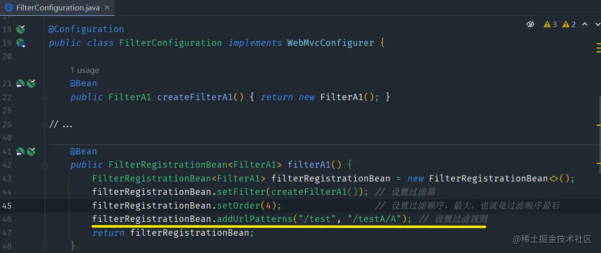 - 但目前来说,比较遗憾的是这种配置方式没有额外的方法可以配置其过滤顺序