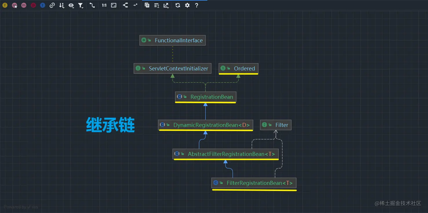order属性是FilterRegistrationBean类通过间接继承父类RegistrationBean得来的