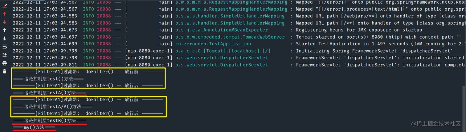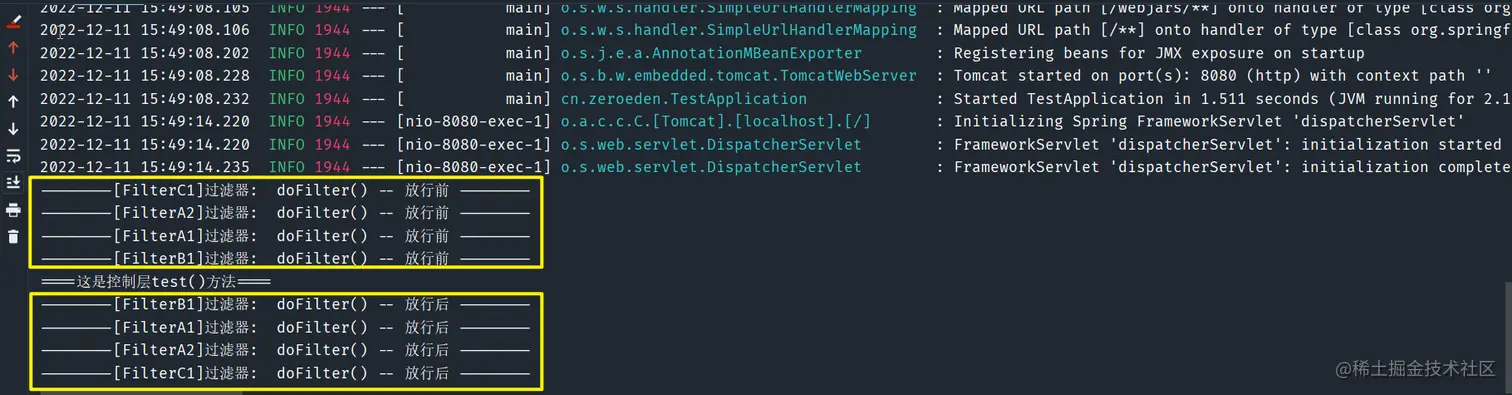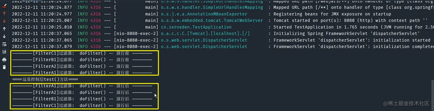/test接口,其过滤顺序结果如下 -