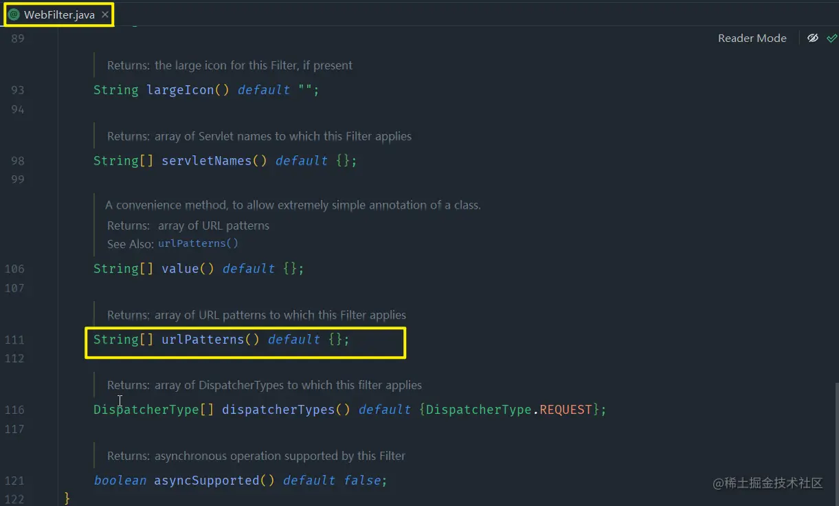 @WebFilter是Servlet中的注解,如下图 -