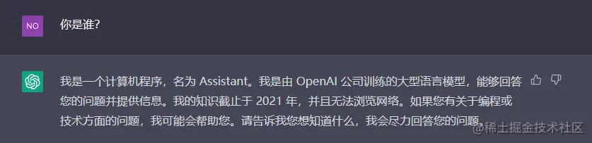 他明确表示不会替代程序员,并且能客观认识到自己的优势:帮程序员快速找到答案和解决问题;不足:无法独立思考、创造和解决问题。同时也把程序员的定义说了一遍,肯定了程序员的地位,总的来说回答还是挺中肯的。