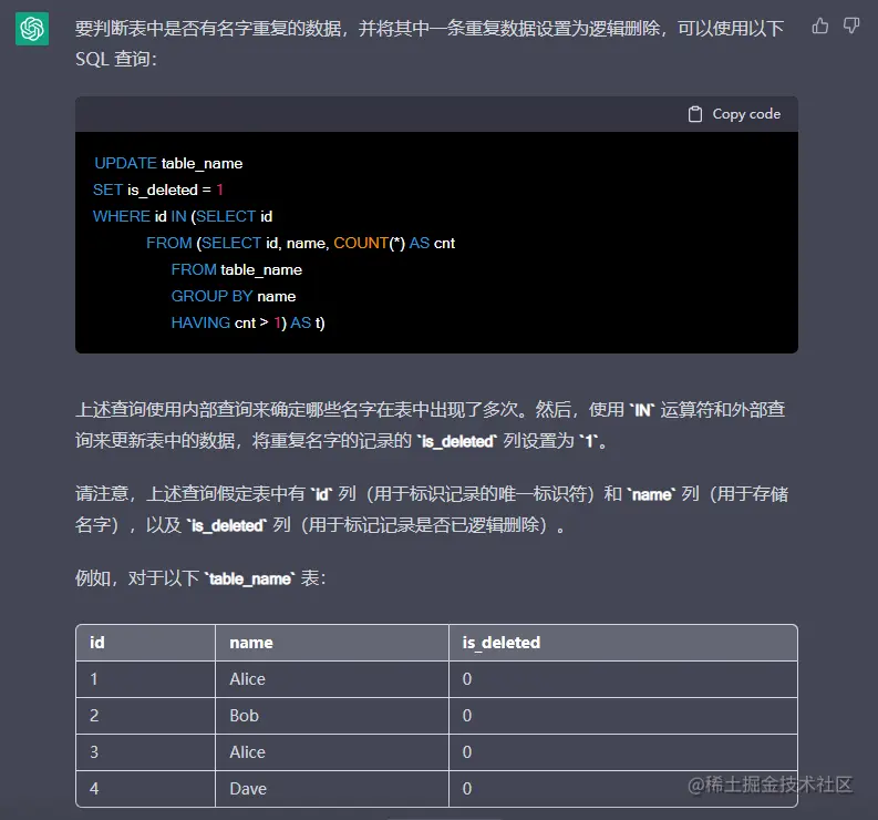 看来他真的可以完全理解我的描述,竟然都能知道什么是逻辑删除,还给出了例子,还是相当智能的。