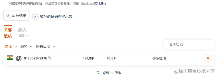 第四步:购买之后会跳转到下面这个页面,接着你就可以获得一个手机号,拿着这个手机号,填到之前需要验证号码的地方,记得国家选择印度,91开头的,填入去掉91之后的数字,然后获取你的验证码并输入: