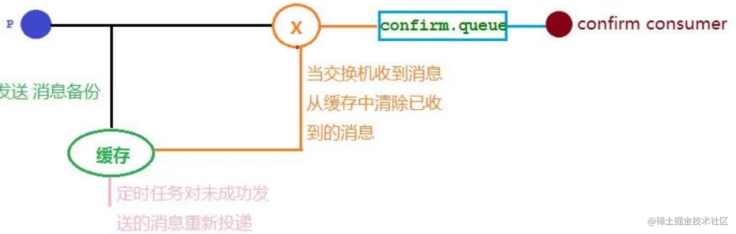在仅开启了生产者确认机制的情况下,交换机接收到消息后,会直接给消息生产者发送确认消息,如