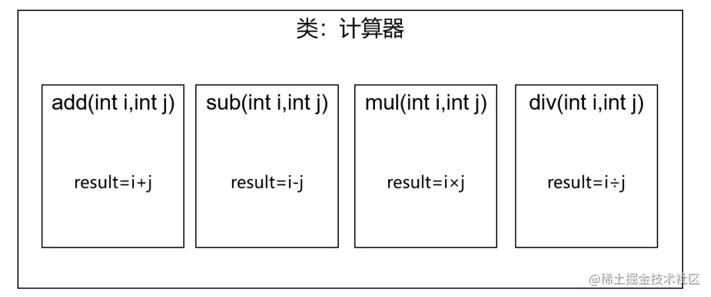 声明计算器接口Calculator,包含加减乘除的抽象方法