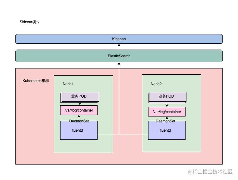| 2 | sidecar模式,独立日志组建与业务运行在同一个Pod中 | 低耦合,扩张性强,易维护,与语言无关 | 需要独立配置k8s yaml文件,性能问题需要考虑 | filebeat |