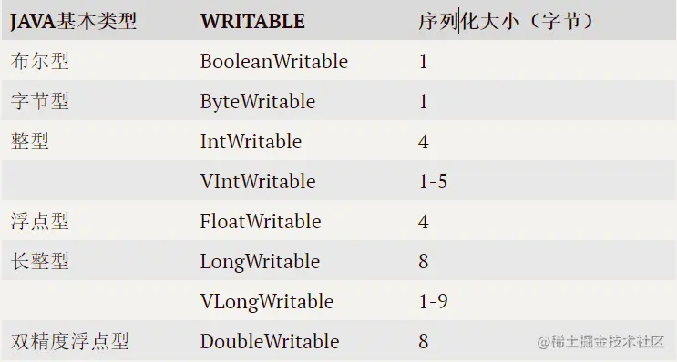 鉴于上述问题,Hadoop提供了常用类型的序列化