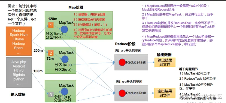 - ReduceTask:负责 reduce阶段的整个数据处理流程。对 Map 结果进行汇总