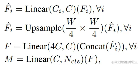 - 使用轻量化的全MLP构成的解码器,融合多层特征,产生输出结果