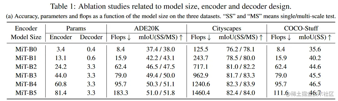 设计了Mix Transformer encoders (MiT), MiT-B0 to MiT-B5。