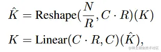 计算复杂度为,这对于高分辨率图像是难以实现的,文中使用缩减比例R来缩减序列(缩减的KV)长度: