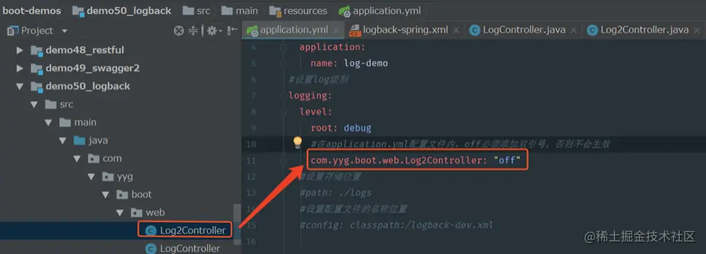 <logger name="com.yyg.boot" level="debug"/>