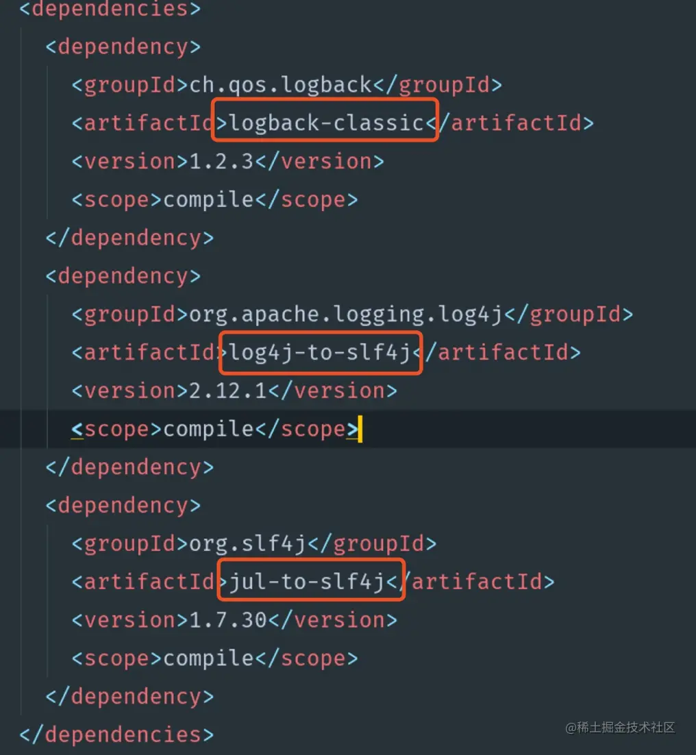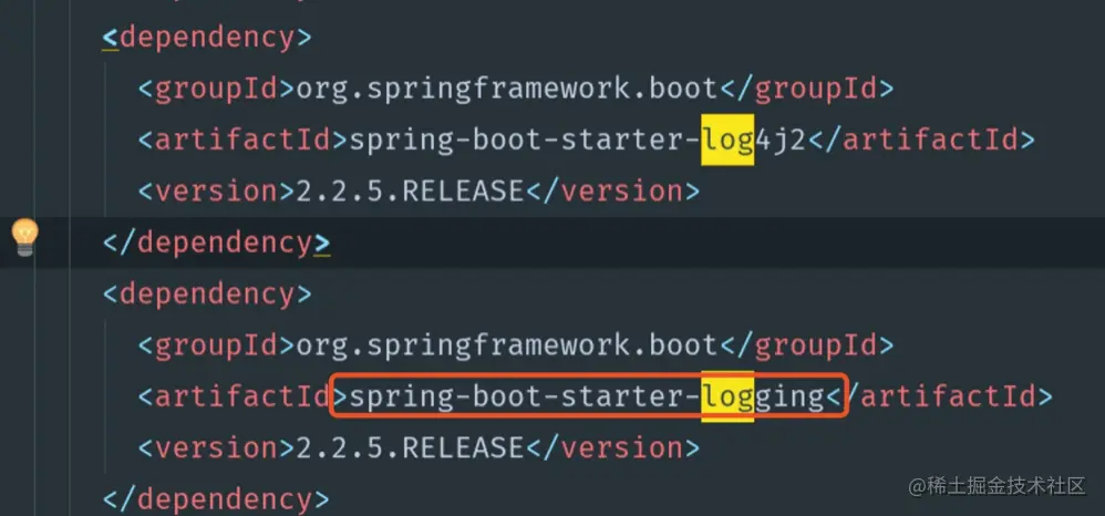 再往上查看,会发现内部自带的日志依赖包。