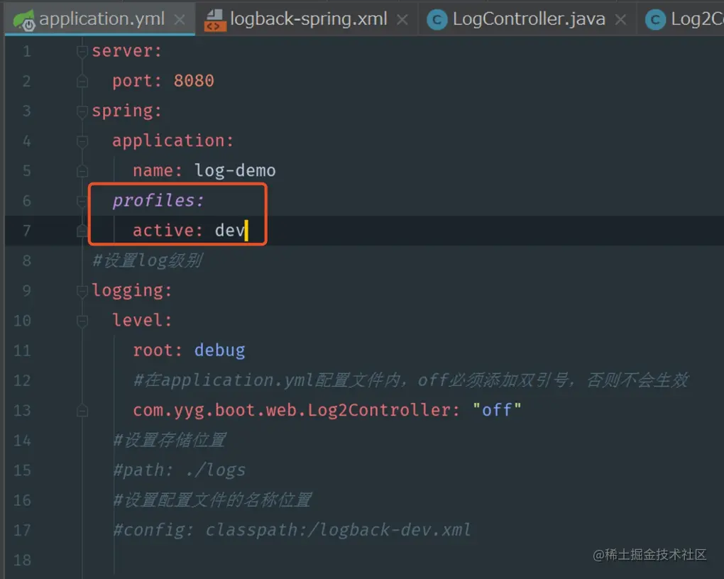 在这个application.yml配置文件中,可以在这里设置log的级别。