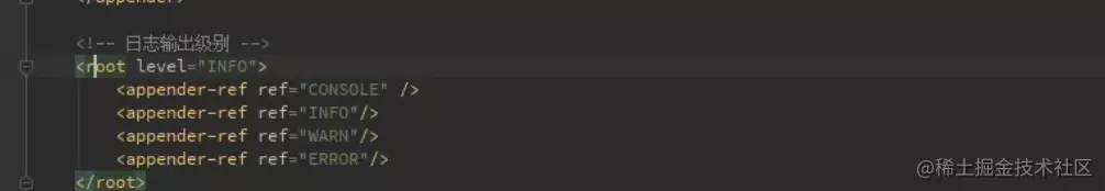 root节点是必选节点,用来指定最基础的日志输出级别,只有一个level属性