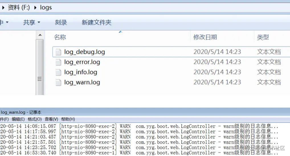 并且在我们的磁盘中也可以看到输出了日志文件。