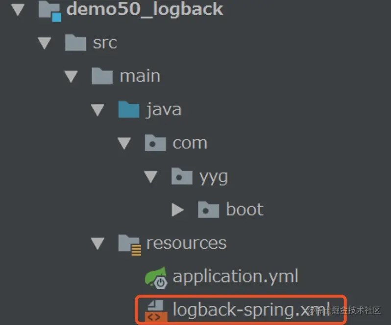 这个文件在springboot中默认叫做logback-spring.xml,我们只要新建一个同名文件放在resources下面,配置即可生效。