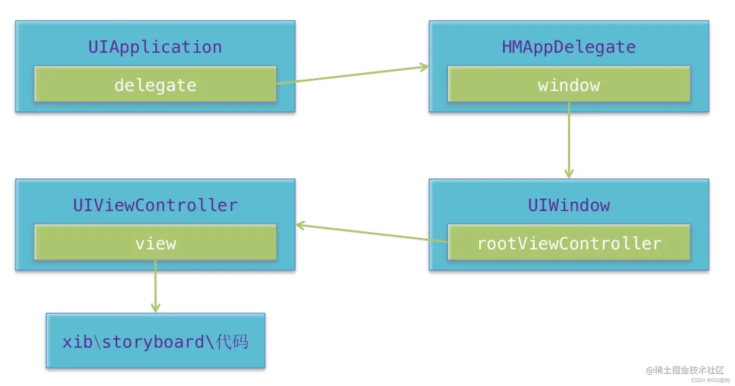 - 一个iOS程序启动后创建的第一个对象,就是UIApplication对象