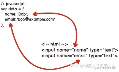 当用户填写表单时,View 的状态就被更新了,如果此时可以自动更新 Model 的状态,那就相当于我们把 Model 和 View 做了双向绑定