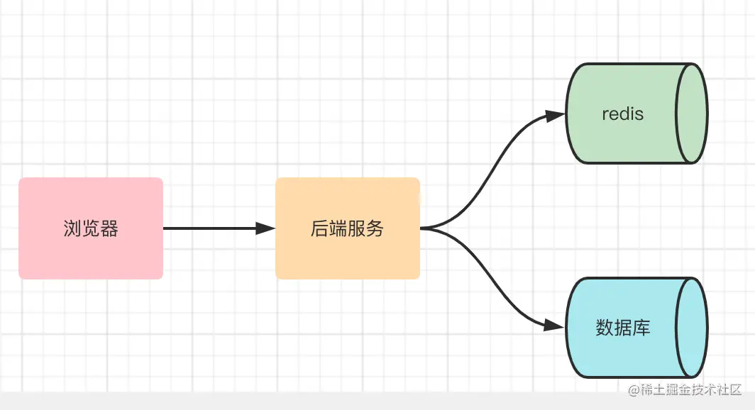 redis作为内存数据库,最常见的使用场景就是当缓存用。浏览器访问后端应用,后端应用先访问redis,如果redis中有数据,直接返回;否则就去查询数据库。