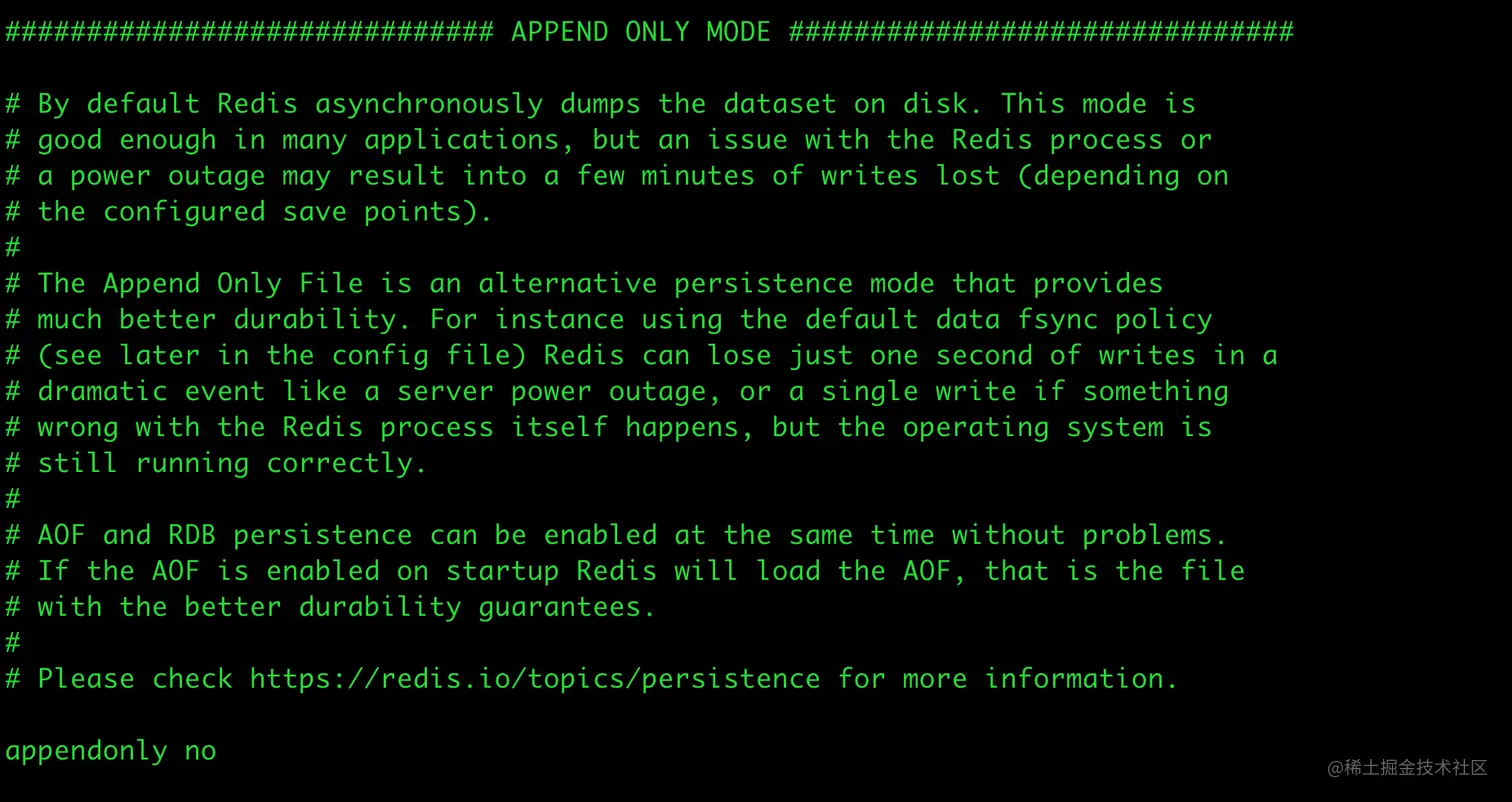 根据配置文件说明,使用者可以自定义rdb写入频率,但是设置多少合适呢?频率太高,会造成磁盘写入压力过大,上次一次写入任务还未执行完成下一次写入任务又开启了,从而进入恶性循环;频率太低,会造成数据丢失过多的问题发生,因此写入频率的设置是一个不太好衡量的操作。