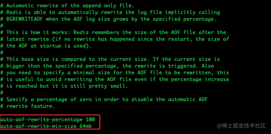 aof文件大小达到64M并且当前大小相比上一次重写后aof文件的大小增长100%就会触发重写操作