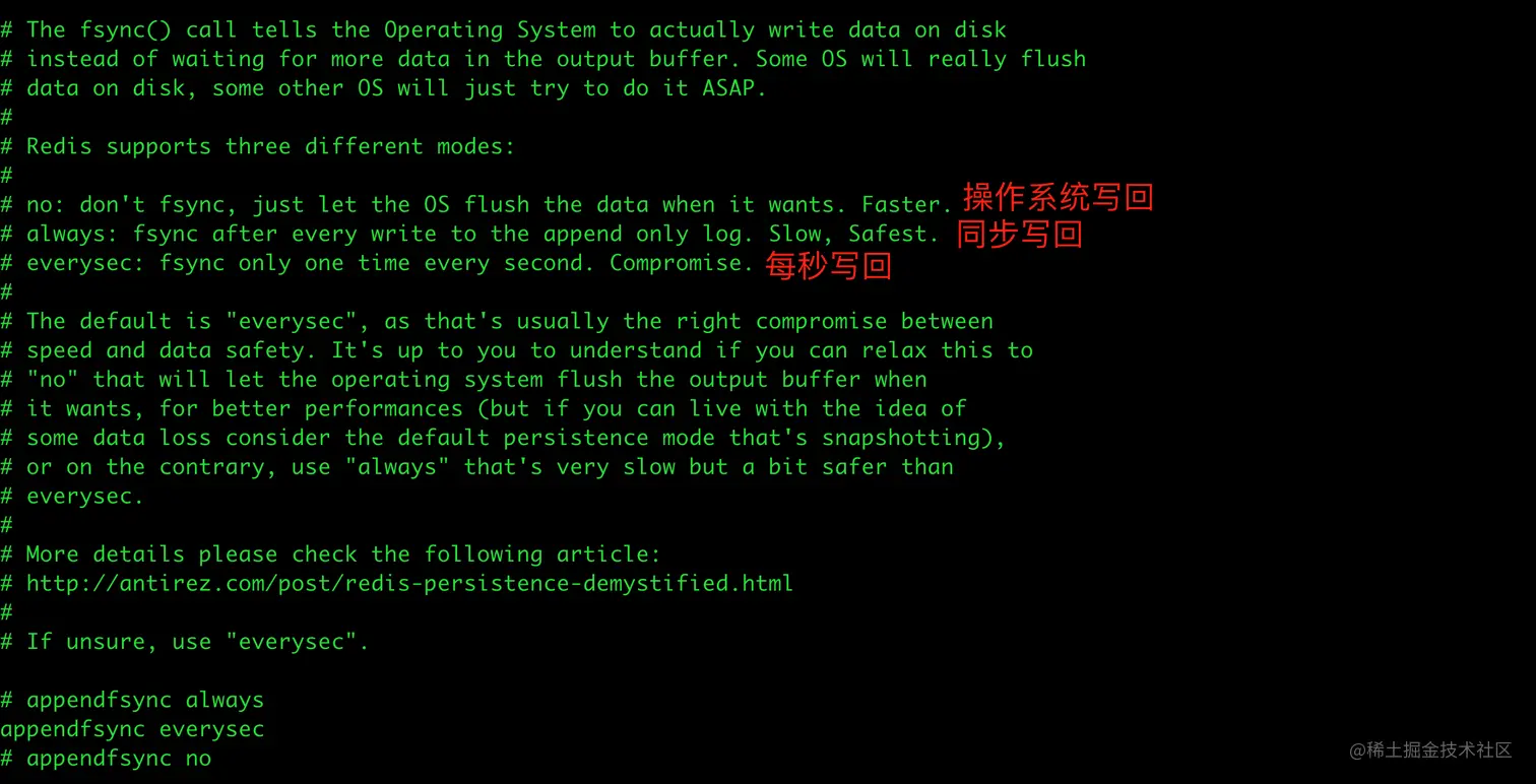 | always(同步写回) | 性能最差 | 可以保证几乎不丢数据 |