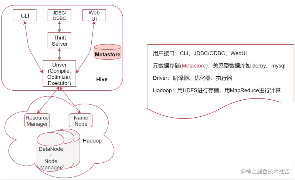 - Hadoop:Hive的一切使用都是基于Hadoop