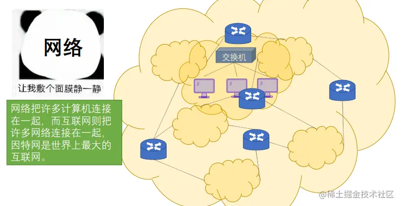 1.1组成部分:硬件、软件、协议(一系列规则和约定的集合)