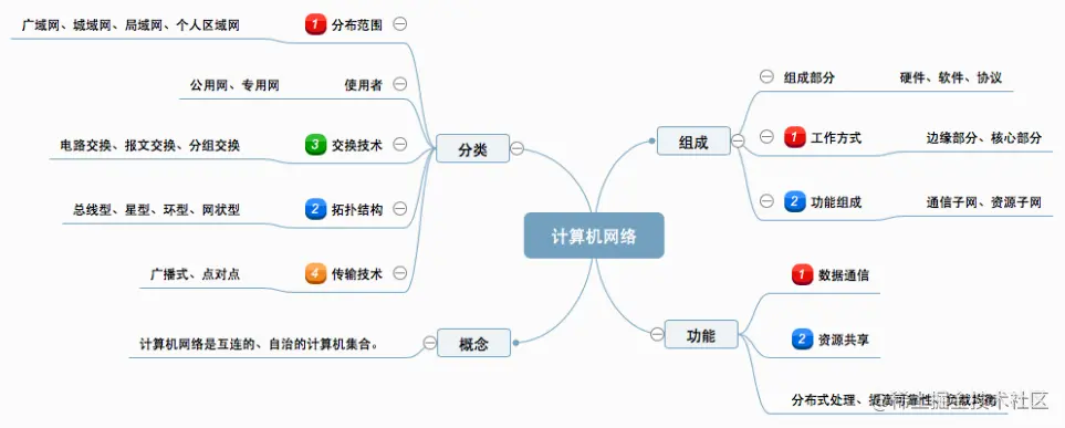 | 2.资源共享 | 同一个计算机网络上的其他计算机可使用某台计算机资源的行为,可共享硬件、软件、数据 |