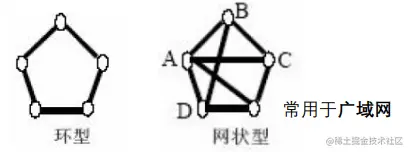 广域网覆盖范围较广、结点较多,为了保证可靠性和可扩展性,通常需采用网状结构。15.在n个结点的里形拓扑结构中,有(A)条物理链路。