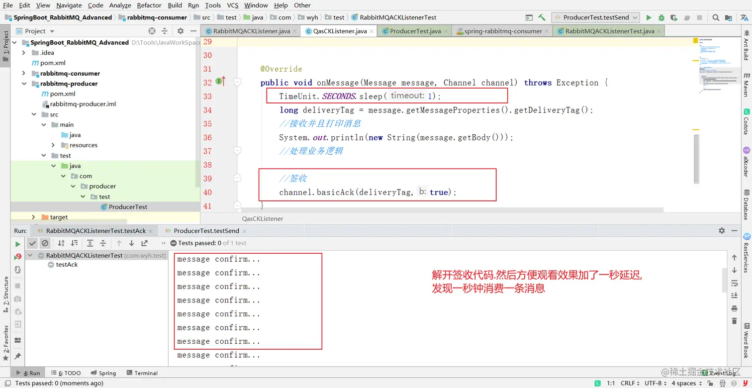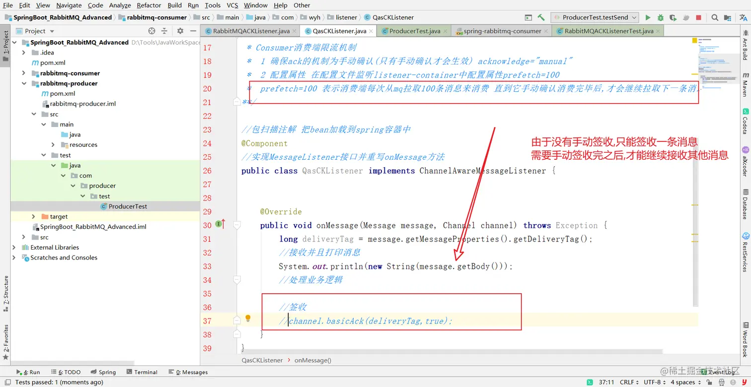 1 确保ack的机制为手动确认(只有手动确认才会生效) acknowledge="manual"