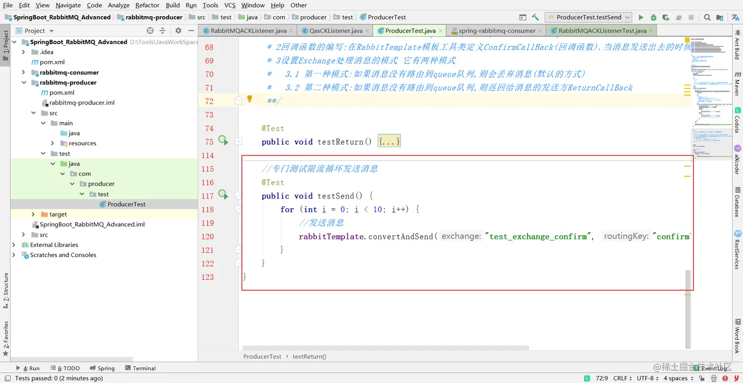 rabbitTemplate.convertAndSend( "test_exchange_confirm" , "confirm" , "message confirm..." );