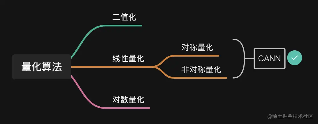 量化常用的算法有二值化、线性量化和对数量化,线性量化又可以根据是否有offset细分为对称量化和非对称量化两种,而CANN里的量化算法采用了线性量化方式,并将对称和非对称量化方式进行了归一。