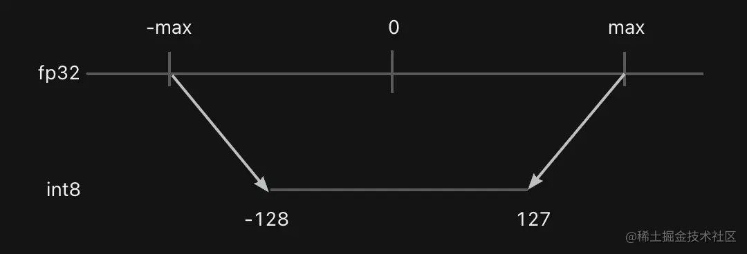 其中的scale的计算方式如下,int8数据对应的表示范围为[-128*scale, 127*scale]。