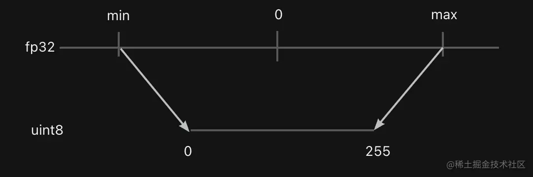 其中scale为fp32浮点数,datauint8为uint8的定点数,offset是int8的定点数,scale和offset的计算方式如下: