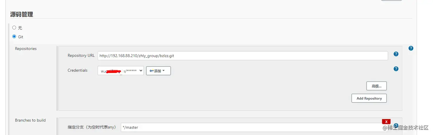 添加一个“自由风格”软件项目,配置git仓库: