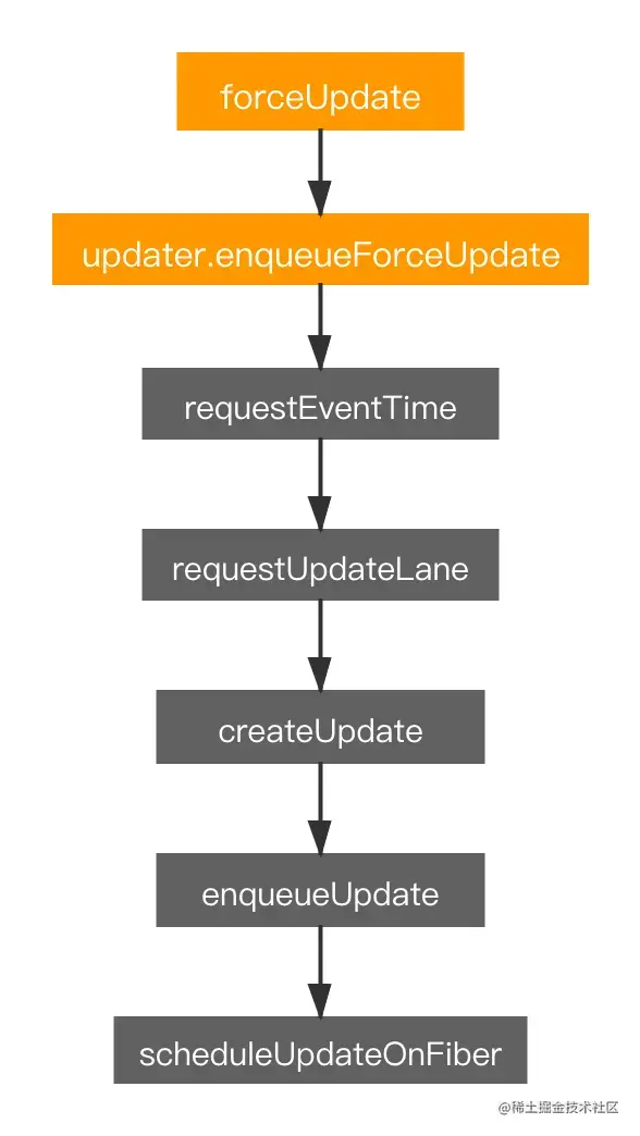 同样其调用了触发器 updater 上的 enqueueForceUpdate 方法,enqueueForceUpdate 方法也同样是触发了一系列的更新流程: