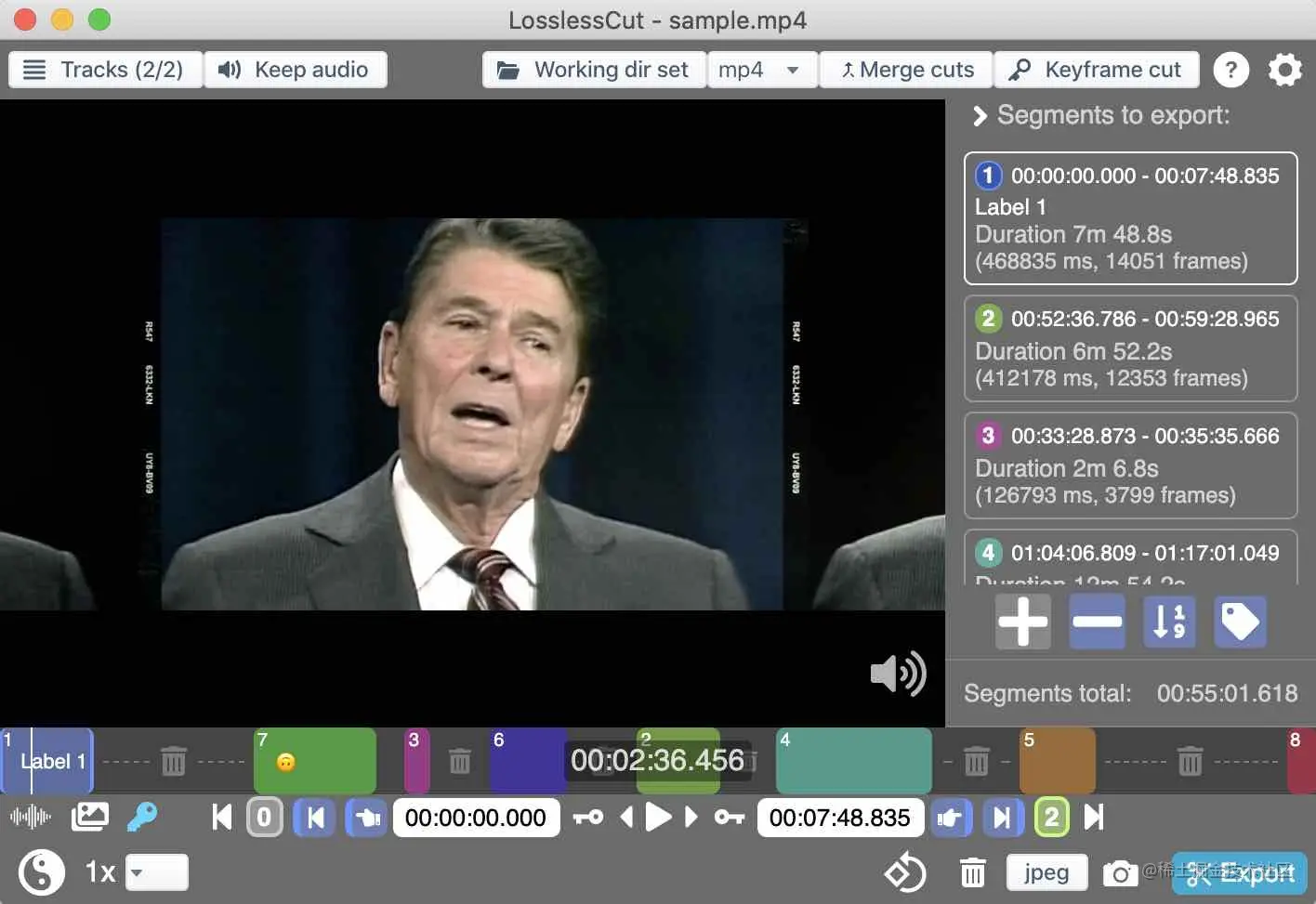 lossless-cut 旨在成为对视频、音频、字幕和其他媒体文件进行快速、无损操作的跨平台 FFmpeg GUI,主要功能是对视频和音频文件进行无损修剪和剪切。你可以快速在一段视频中提取好片段,并丢弃 gb 的数据量,无需缓慢重编码。同理,增加音频和字幕亦然,无需新编码。