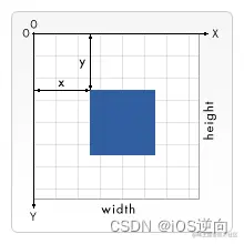 画布左上角的坐标是 (0, 0),横坐标(x)轴向右延伸,纵坐标(y)轴向下延伸。