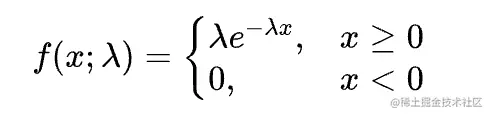 指数分布是泊松点过程中事件之间时间的概率分布。指数分布的概率密度函数如下: