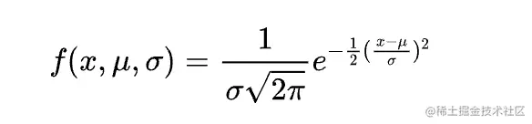 const y = (x) => 1 / (sigma * Math.sqrt(2 * Math.PI)) * Math.exp(-0.5 * Math.pow((x - u) / sigma, 2))